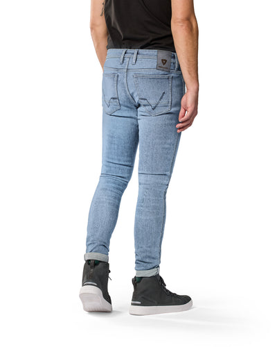 Thanks to the development of 16.7oz. CORDURA® PWR|Hyperstretch denim with COOLMAX® and THERMOLITE®, we were able to make the mid-waist Piston 3 Skinny jeans our skinniest ever. And since the stretch is as stretchy as we could get, we could make these jeans hug the body even tighter, for a look that transitions naturally from motorcycle to sidewalk.